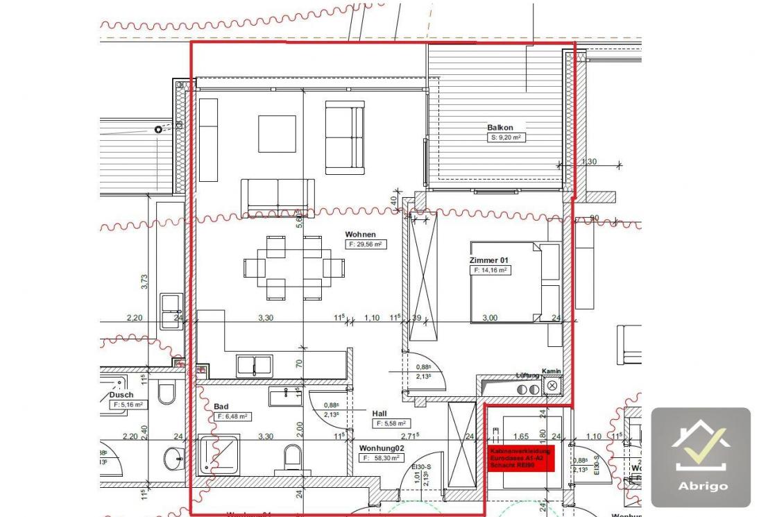 Abrigo vous propose la location d'un nouveau appartement de +/-58m2, finitions haut-standing, première location, 1 chambre à coucher, dans une rue calme à Junglinster, se composant comme suit: