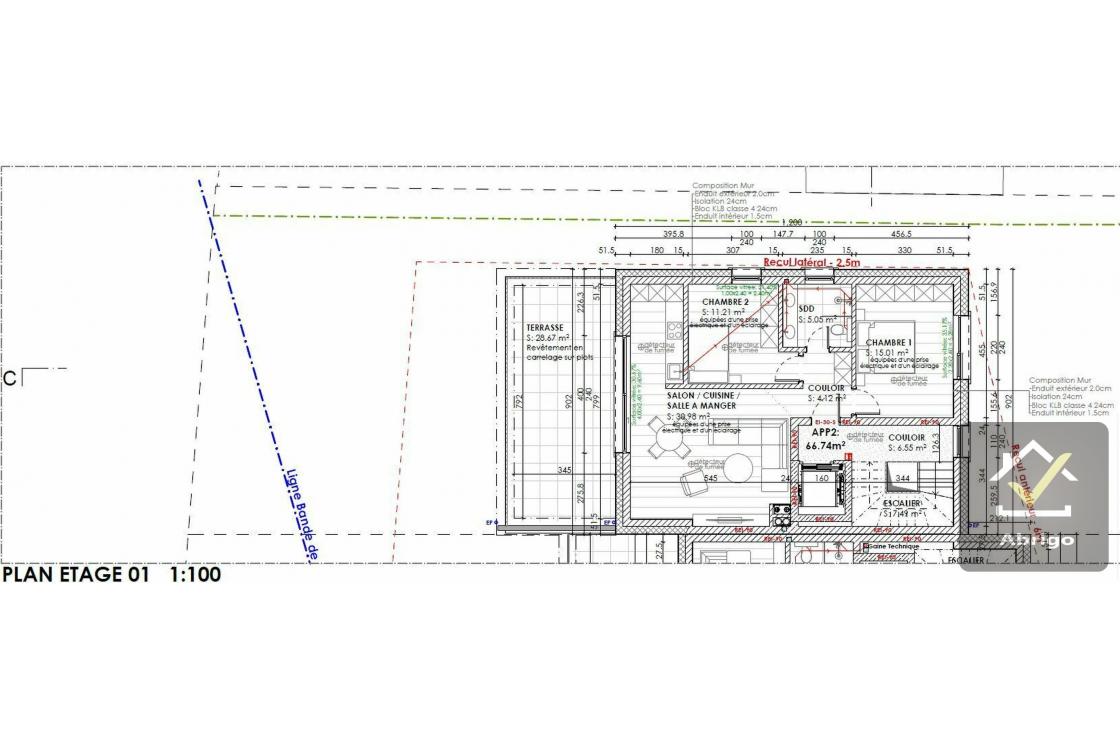 - Terrasse : 25,77 m² - 1 emplacement de parking intérieur (12,50 m²) - 1 emplacement de parking extérieur (14,93 m²)